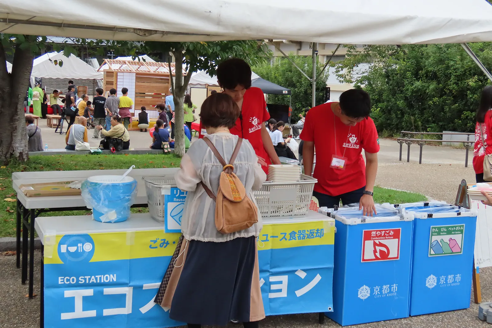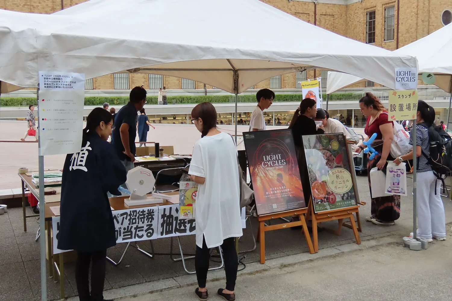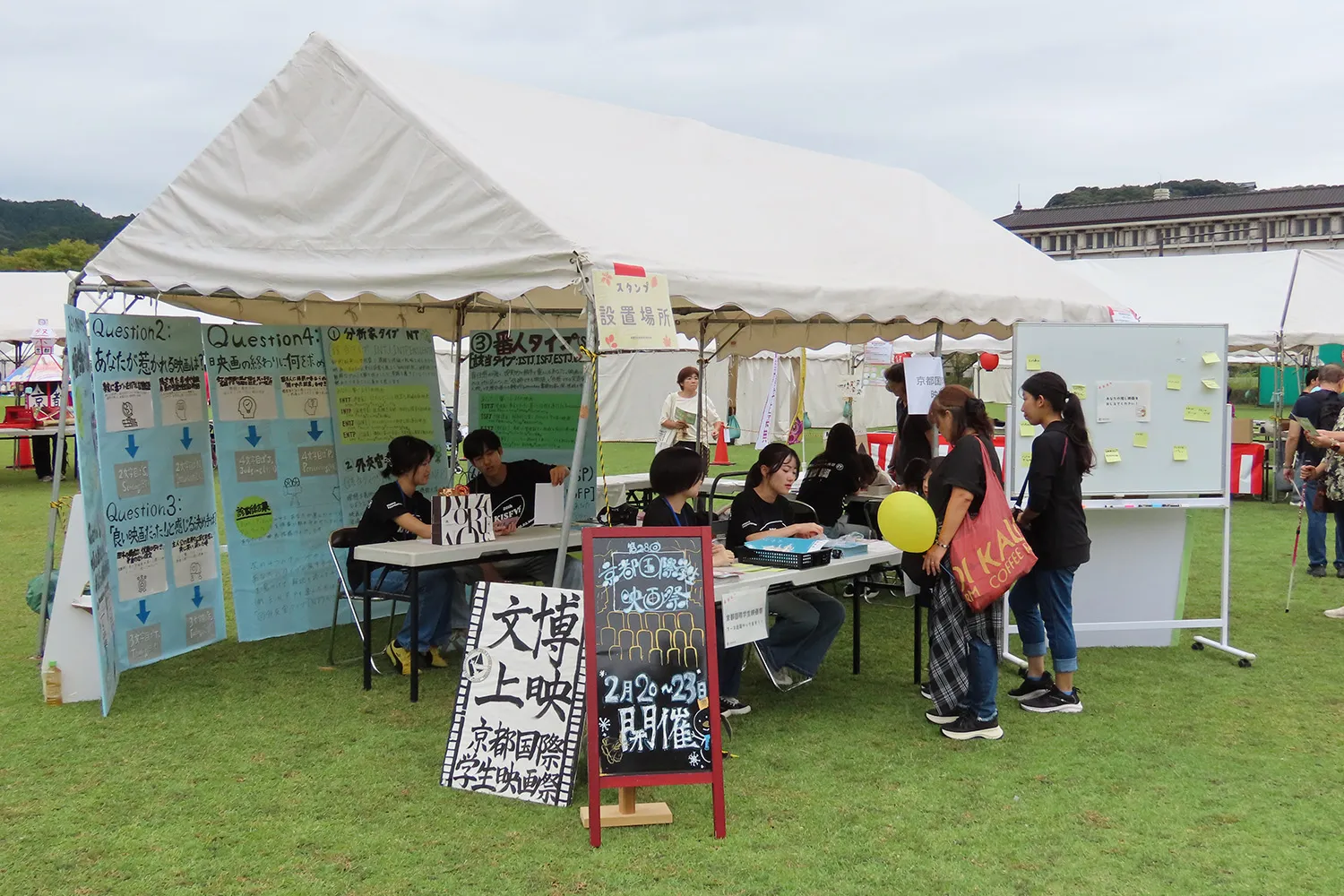 京都學生節的贊助公司和協辦單位舉辦了攤位。 每個公司和組織都經營一個利用其特點的展位。