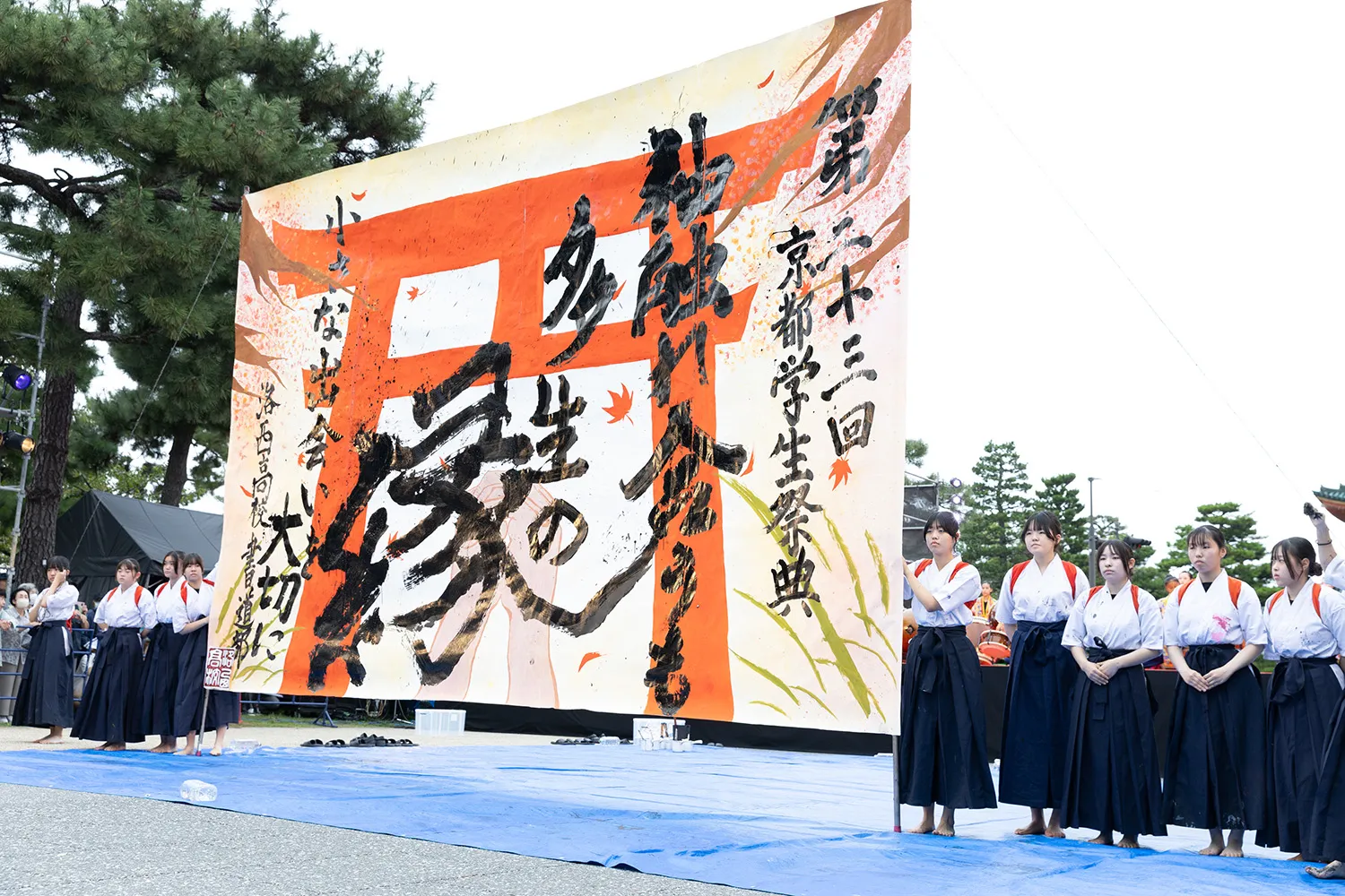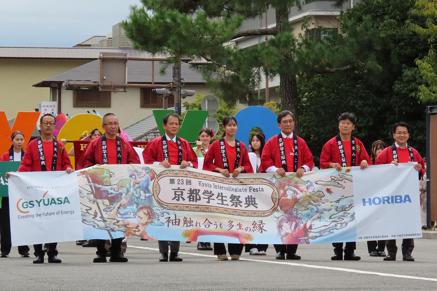 這句話是京都學生節創意舞蹈《京園Sodefure!》的首聲,在第23屆慶祝20週年,上面寫著:“當你上路時,即使是與陌生人碰袖子等最小的事情,即使是與人進行最輕微的談判,也不是偶然發生的,而是命運的深重。它有意義。 我們感謝在京都學生節 23 年的活動中與參觀者、表演者、贊助公司和相關組織建立的深厚關係,我們的目標是使其成為一個讓我們感受到團結感的節日,因為管理層和參與者將共同努力打造京都學生節。 此外,我們將致力於重視與我們每個人的相遇和聯繫的活動,以便23日的新相遇成為未來數十次的節日的糧食。