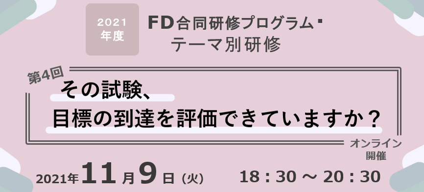 今年度第4回となるテーマ別研修「その試験、目標の到達を評価できていますか?」を、下記のとおり開催いたします。
